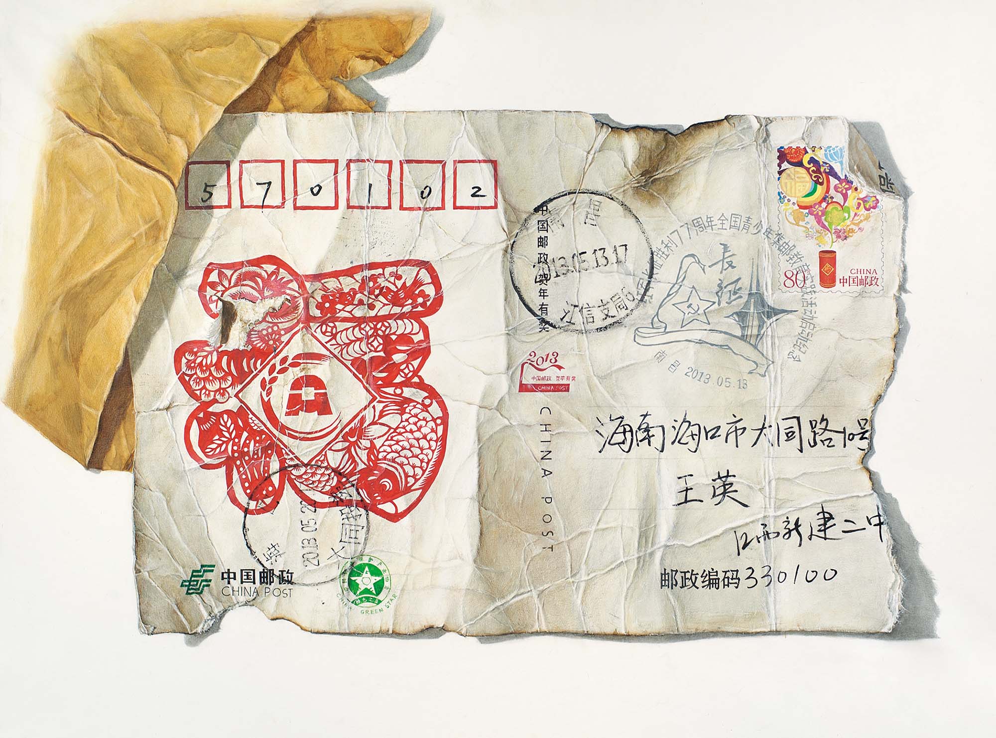 长征符号-《草鞋-生长》作者:冉舒语,辅导:苏海江、孙博。 75x105cm